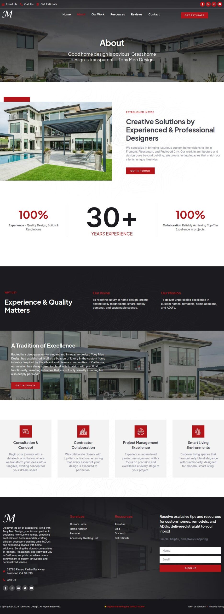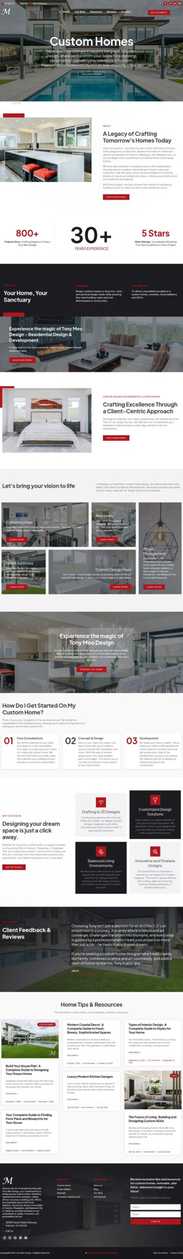 Tony Meo consistently produced exceptional architectural design work, but his online visibility and brand presence did not reflect the level of talent or the scale of clients he wanted to reach. His previous website lacked the clarity, refinement, and aesthetic needed to position him as a premium home designer.